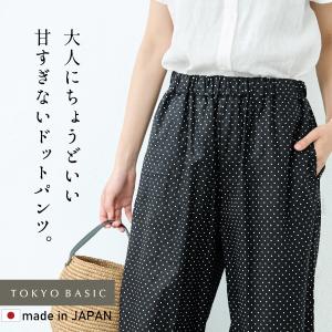 柄パンツ 水玉 イージーパンツ ワイドパンツ レディース 40代 50代 日本製 リネン&コットン ドット柄 ワイドパンツ 爆買