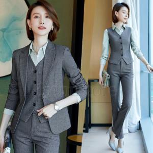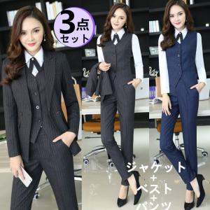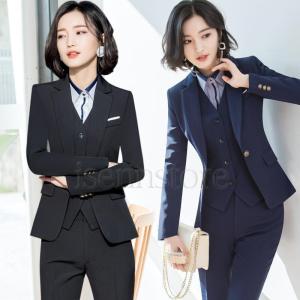 フォーマルスーツ制服 事務服 就活スーツ 3点セット パンツスーツ OL 細身ビジネス 通勤 スーツ ベスト ジャケット パンツ女性用 オフィススーツパンツスーツ