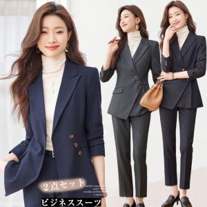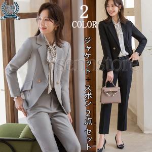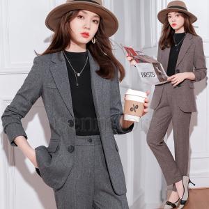 秋 お洒落 着痩せ 上品 パンツスーツ セットアップ 喪服 2点セット レディースフォーマルスーツ制服 事務服 無地 大きいサイズ スーツ ビジネススーツ 1ボタン
