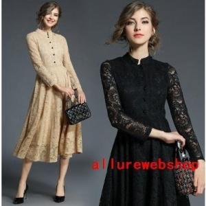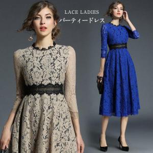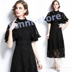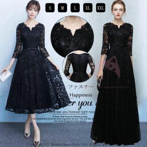パーティードレスロングドレスフォマール結婚式演奏会顔合わせ服装袖ありウエディングロング丈ワンピースレース大人上品黒食事会二次会