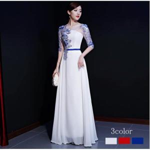 パーディードレス Aライン ロングドレス 袖あり 刺繍 結婚式 二次会 舞台用 披露宴 演奏会 発表会 ピアノ 大きいサイズ イベント ウエディングドレス