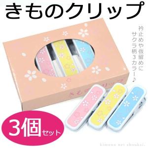 【特別価格】着付けクリップ 3個 セット 大 強力バネ 衿止め 着物クリップ 3点セット 桜柄 クリップ 着物 ハンディクリップ 7cm 帯 変わり結び おしゃれ 礼装
