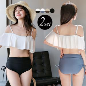 水着 タンキニ レディース 2点セット 大きいサイズ ビキニ セパレート ビスチェ風ブラ ブラトップ クロップド丈 肩紐 夏 海 プール 黒 白
