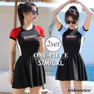 水着 レディース 体型カバー おしゃれ 2点セット フィットネス水着 ママ 水泳服 スイムウェア 半袖温泉 海水浴 20代30代ワンピース カバーアップ タンキニ