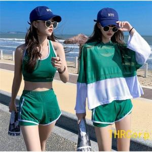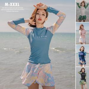 2点セット 水着 長袖 レディース お揃い水着 ショートパンツ スカート ビキニ サーフパンツ ラッシュパンツ ウエットスーツ ラッシュガード スイミング