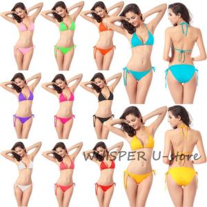 レディース ビキニ 2点セット スイムウェア ホルター セパレート 胸パッド ワイヤー無 おしゃれ 無地 海水浴 ビーチ 夏 温泉