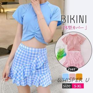 水着 レディース 体型カバー 2点セット パッド付 ビキニ 上下セット 小胸 盛れる 温泉 プール 海 夏 ママ水着 UVカット 紫外線対策 海水浴
