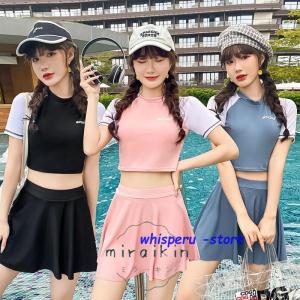 水着 レディース 高校生 中学生 冷感 ラッシュガード 半袖 黒 ブラック ピンク ブルー おしゃれ 10代 20代 ママ水着 セパレート 体型カバー フレアスカート