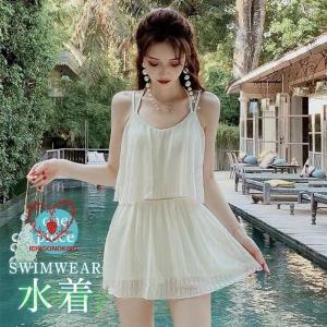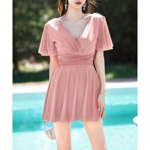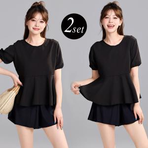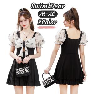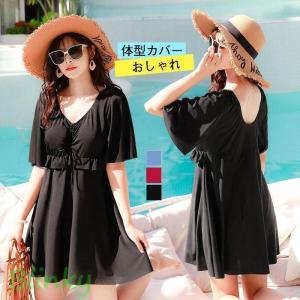 水着 レディース ワンピース オールインワン 体型カバー おしゃれ かわいい 20代 40代 肩出し アシメ 黒 無地 フリルヘム オトナ女子 フレアスカート お洒落