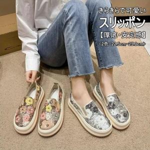 ラウンドトゥ 厚底 フラット底 安定感 美脚 ぺたんこ スパンコール飾り きらきら 大人可愛い コンフォート おし