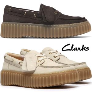 クラークス レディース 厚底デッキシューズ 本革 チャンキーソール ボートシューズ トーヒルボート ローファー ダークスエード 26186647 ヌバック 26186302