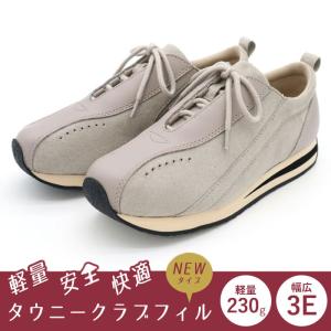 ウォーキングシューズ レディース 幅広3E 軽量 タウニークラブフィル NEWタイプ ライトグレー 40代 50代 60代