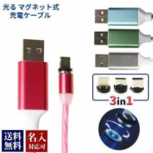 名入れ 刻印対応 USBケーブル 3in1 光るマグネット式充電ケーブル 全4色 USB iPhone MicroB TypeC アイフォン アンドロイド LEDライト ギフト