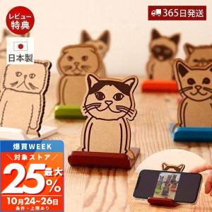 ポイント還元! スマホスタンド 携帯 電話 タブレット ホルダー 卓上 木目 猫 ねこ 木製 CAT 可愛い 立て 置き 日本製 国産 おしゃれ デザイン ヤマト工芸