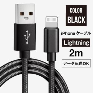 (送料無料) iPhone ケーブル 2m Lightning ブラック 急速充電 データ転送可能 布スリーブ仕様 高耐久 断線に強い
