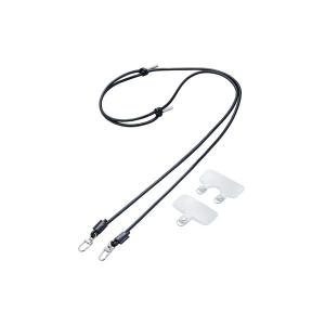 エレコム スマホ ショルダーストラップ 肩掛け 首掛け ストラップホルダー2種類付き レザー 丸紐 4mm ブラック P-STSDH2LR04BK