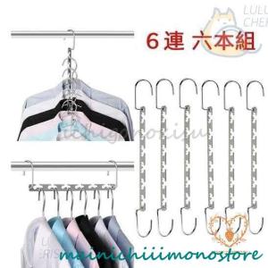 省スペース ハンガー 6連 2way 物干しハンガー クローゼット ハンガー 収納ラック 衣類 ステンレスハンガー 収納力アップ 洋服 多機能 洗濯 5本セット
