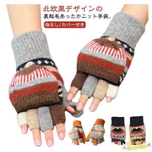 冬 指なし 北欧柄 手ぶくろ おしゃれ ふわふわ カバー付き レディース 手袋 ミトン ニット 裏起毛 てぶくろ グローブ スマホ対応 自転車 厚手 もこもこ 裏フリー