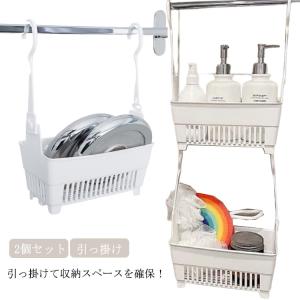 お風呂用 ハンギングバスケット おもちゃバスケット 2個セット シャワーラック 収納 バーに吊るせる ボトル ラック 引っかけ 連結 バスルーム タオ