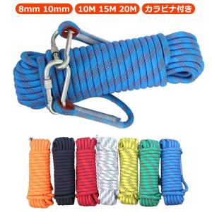 10m ロープ 付き 牽引ロープ アウトドア 20m 補助ロープ 登山 クライミング 8mm 15m カラビナ 多用途ロープ 牽引 牽引 多機能ロープ