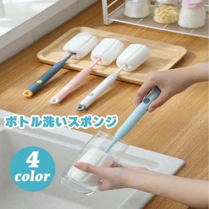 ボトルブラシ ロング スポンジ 水筒 グラス 魔法瓶 やわらかい ロングボトルブラシ たわし ボトルクリーナー タンブラー おしゃれ