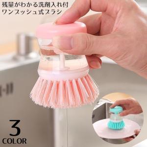 キッチンブラシ ワンプッシュ 洗剤入れ付 たわし 掃除 食器洗い シンク 台所 鍋溝 焼き網 軽量 ハンディ 多機能 便利 時短