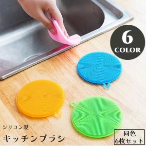 キッチンたわし ブラシ 台所用 シリコン キッチン用品 タワシ 多機能 丸型 両面タイプ 食器洗い フライパン 鍋 掃除 野菜洗い 無地 単色 ランダ