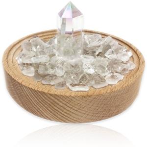 浄化用 水晶 さざれ石 さざれ 六角柱 ポイント パワーストーン 水晶ポイント 天然石 チャクラ 玄関 置物 浄化セット 木製 丸トレー (
