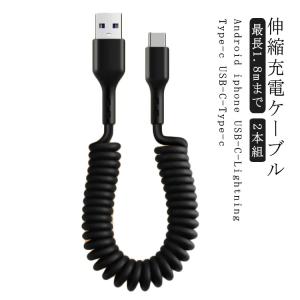 充電ケーブル 伸縮式 高速充電 送料無料 iPhone充電ケーブル 2本 USBケーブル USB-C ライトニングケーブル PD Apple Type
