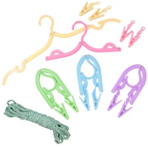 携帯ハンガー 10本セット 5色 洗濯ばさみ20個 物干しロープ付き 旅行用 ハンガー セット ピンチ 衣類ハンガー 物干し 折りたたみ式 旅行
