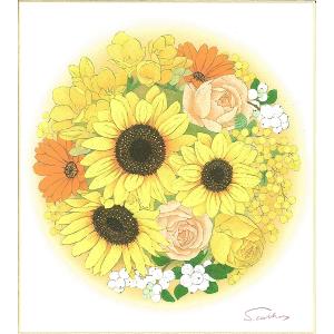 色紙(誕生花 風水四季花)白木 菜加作画「開運花風水 黄」 色紙寸法24.2X27.2cm
