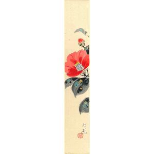 短冊(冬)中谷 文魚作画「椿」 短冊寸法36.3X6cm