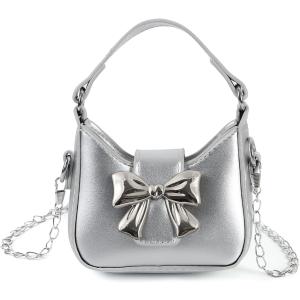 ショルダーバッグ 手提げバッグ 2way リボン 子ども かわいい 女の子 小学生 子供 キッズ おしゃれ ポシェット ミニ(シルバー)