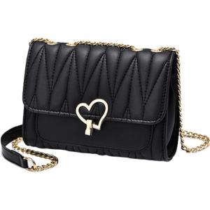 ポシェット 女の子 レディース 斜めがけ ショルダーバッグ おしゃれ 可愛い チェーン PUレザー ハート MDM(ブラック)