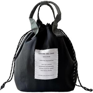 洗濯可。保冷温ランチ巾着 保温 ポーチ シンプル メンズ レディース かわいい おしゃれ コンパクト MDM(ブラック, ノーマル)