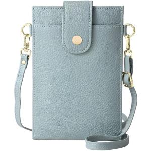 スマホ 小銭 カードが入る スマホポーチ レディース 斜めがけ 携帯 ショルダー バッグ 縦型 軽量 レザー お財布(ライトブルー)