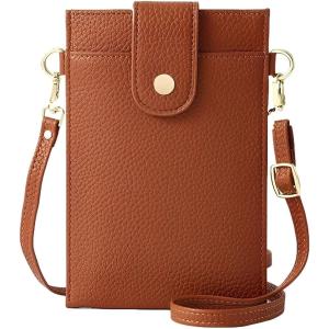 スマホ 小銭 カードが入る スマホポーチ レディース 斜めがけ 携帯 ショルダー バッグ 縦型 軽量 レザー お財布 一体型(ブラウン)