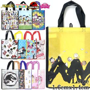 不織布バッグ ハンドバッグ L スヌーピー プリンセス ジュラシック ディズニー キャラクター 手提げ袋 作品収納バッグ マチ付き エコバッグ トートバッグ