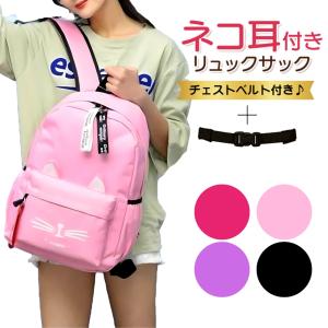 リュック 猫 リュックサック 猫耳 子供 キッズ 女の子 小学生 チェストベルト付き(ベビーピンク, M)