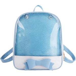 リュックサック ビニール 痛リュック 痛バッグ リボン かわいい 推し活 大容量 子供 子ども(ブルー, 31x27x10cm)