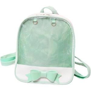 リュックサック ビニール 痛リュック 痛バッグ リボン かわいい 推し活 大容量 子供 子ども(グリーン, 31x27x10cm)
