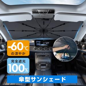 サンシェード 車 傘型 フロント 日本製10本骨 -60℃の涼やか フロントサンシェード UVカット 遮光率100% 遮光断熱 日除け 折りたたみ傘 露天駐車 日焼け対策