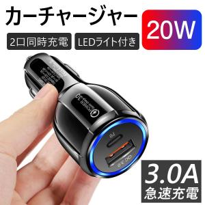 シガーソケット カーチャージャー PD シガーソケット QC3.0 急速充電 ライト付 type-c タイプC usb Iphone 車載 充電器 き スマホ 12V/24V 車