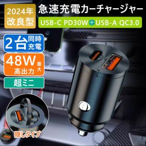 シガーソケット カーチャージャー 車載充電器 埋め込み型 ミニ 急速充電 PD 30W USB-A TYPE-C 車載 充電器 Iphone アンドロイド 12V/24V車対応