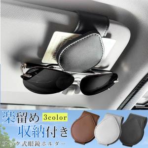 サングラスホルダー 車 メガネホルダー サングラスホルダー フック式 マグネット 収納 サンバイザー メガネホルダー クリップ スタイリッシュ レザー