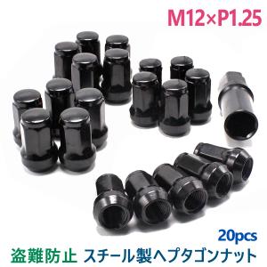 スチール ホイールナット 盗難防止 7角 ロックナット ヘプタゴン 20個 P1.25 ブラック 黒 32mm 19HEX 21HEX エクストレイル 日産 スバル ジムニー