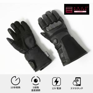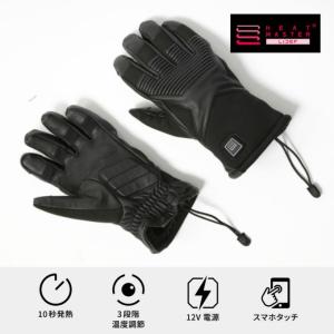 ☆電熱グローブ ヒートレザーグローブ バイク ツーリング スマホ操作 3段階調整 10秒発熱 ヒートマスター 12Vヒートグローブtype1 5100001 ご自宅配送限定‥