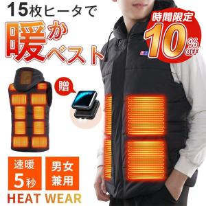 電熱ベスト 裏起毛15つヒーター ヒーターベスト バッテリー給電 3段温度調整 電熱ジャケット 水洗い可能 usb加熱 男女兼用 防寒ベスト モバイルバッテリー付き