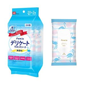 レック(LEC) 女性用 デリケート ウェットシート Femia 20枚入×2個 (無香料) トイレに流せる/日本製/脱毛後のケアにも/赤ちゃん