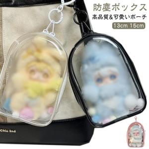 ポーチ 推し活 防塵ボックス カラビナ付き グッズ クリアケース ケース ミニ クリア ぬいぐるみポーチ クリア 透明 持ち歩き オタ活 収納 ポンポ
